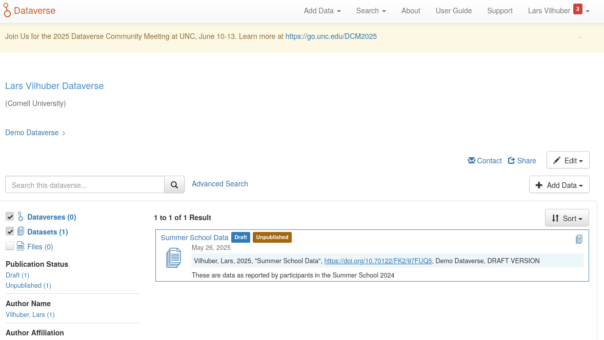 Here: Demo Dataverse for Lars https://demo.dataverse.org/dataverse/larstest